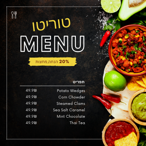 עד 7 ימי עסקים תקבלו הצצה לאיך התפריט שלכם יכול להיראות + הצעת מחיר משתלמת.